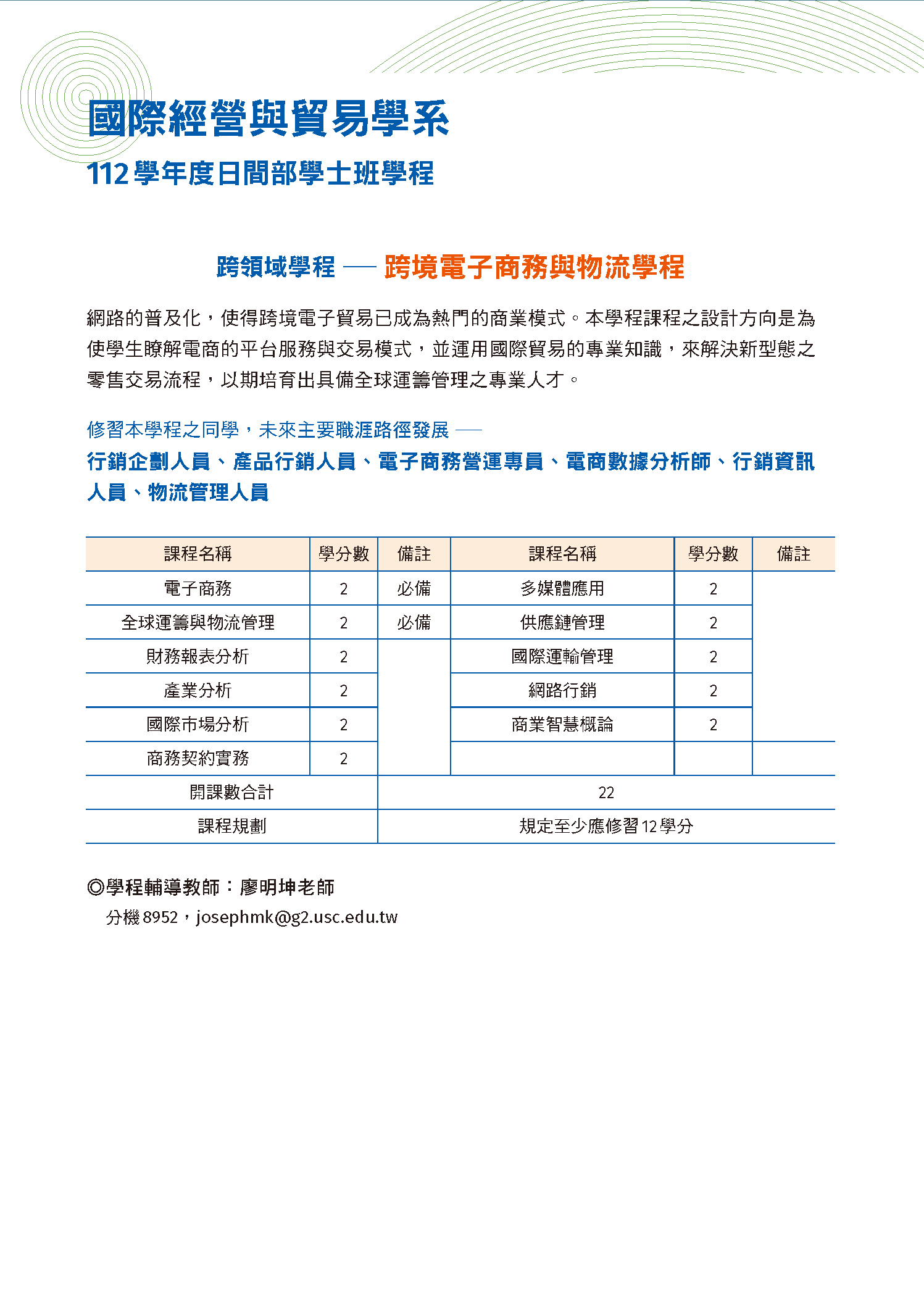 112學年度深化及跨領域學程